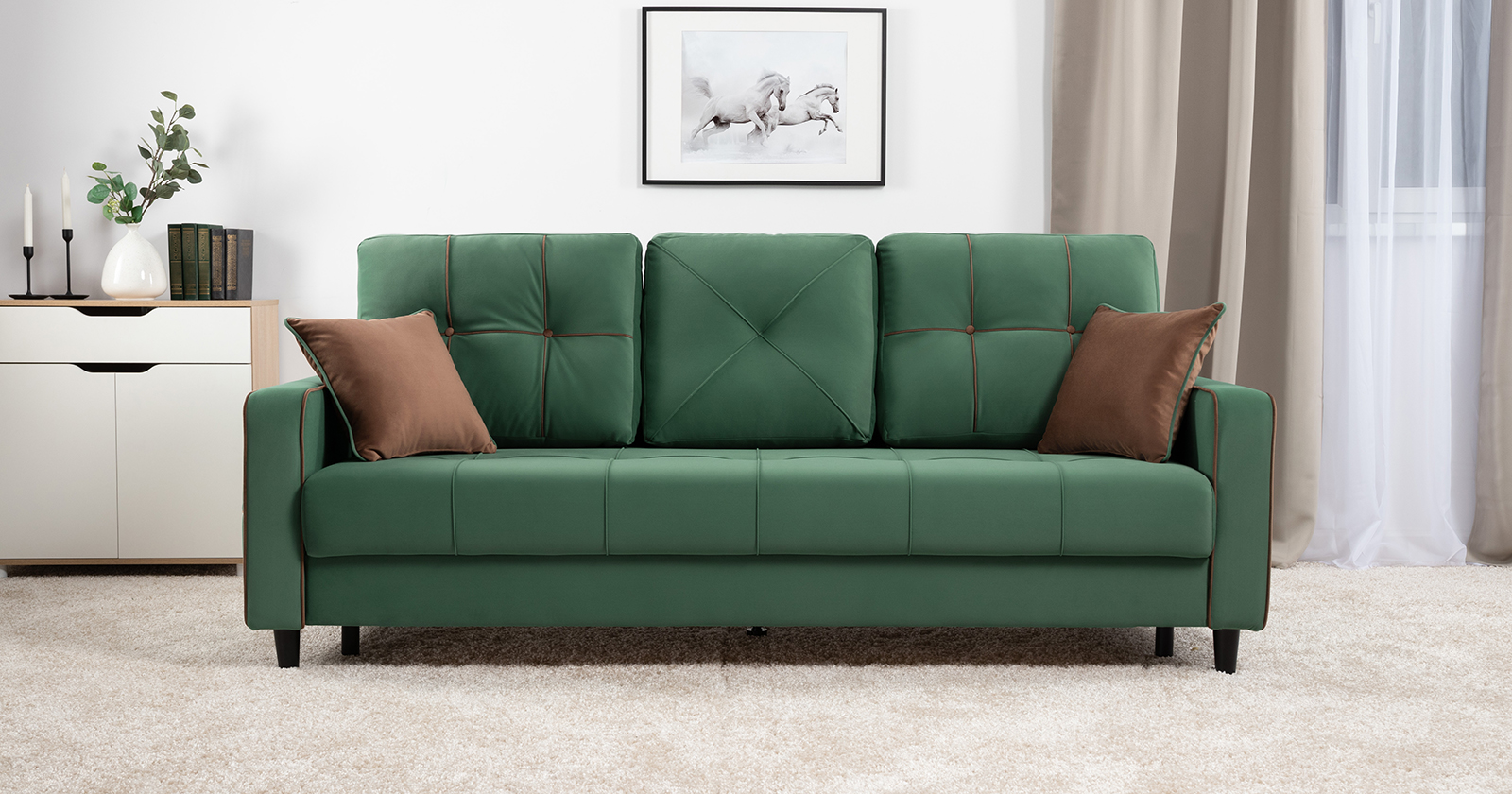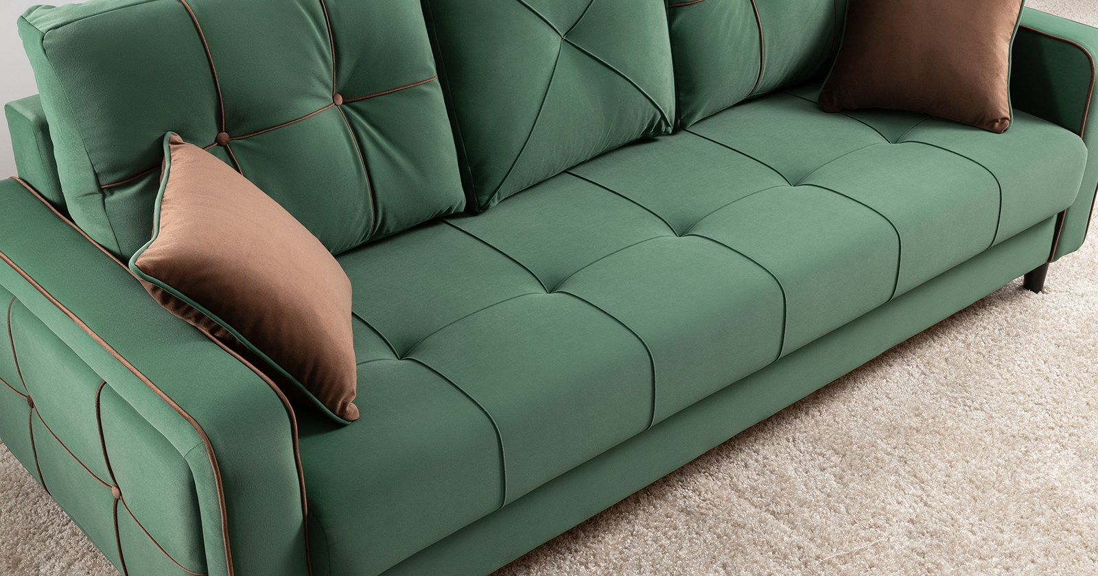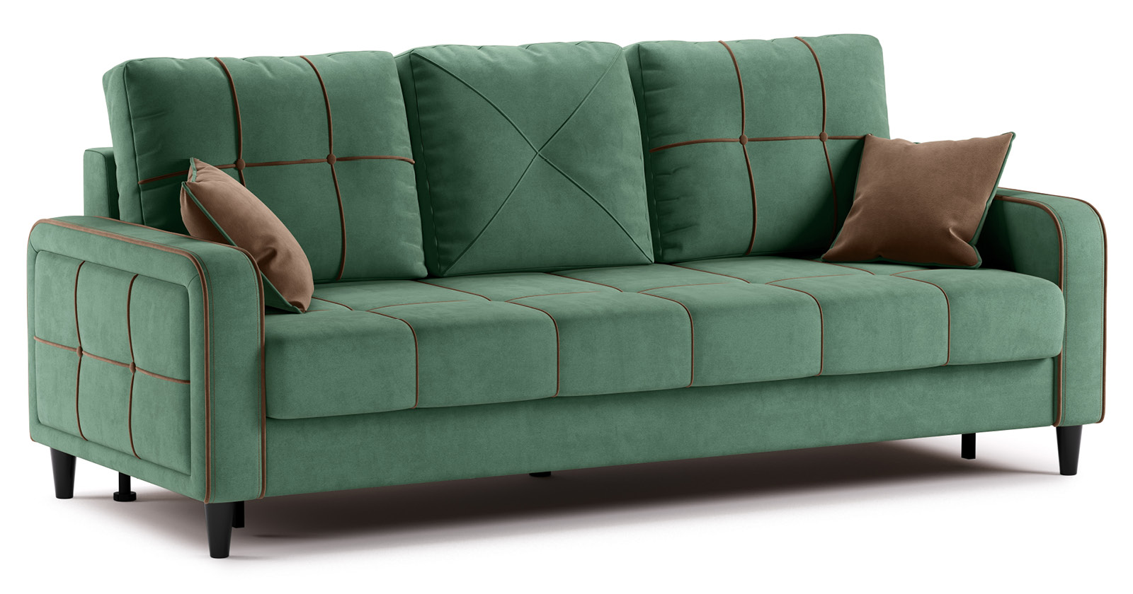 Диван-кровать прямой Черри ТД 288 велюр Irida 09 зеленый, Эвита шоколад бежево-коричневый