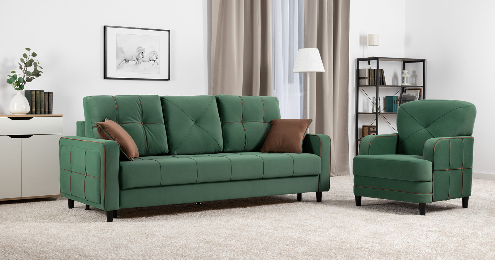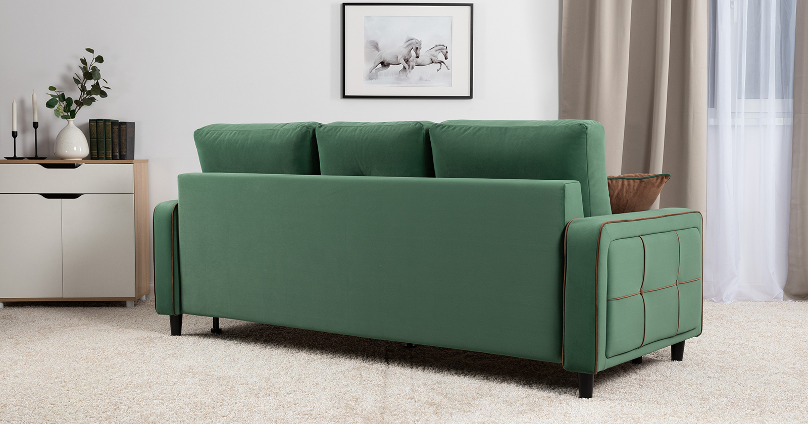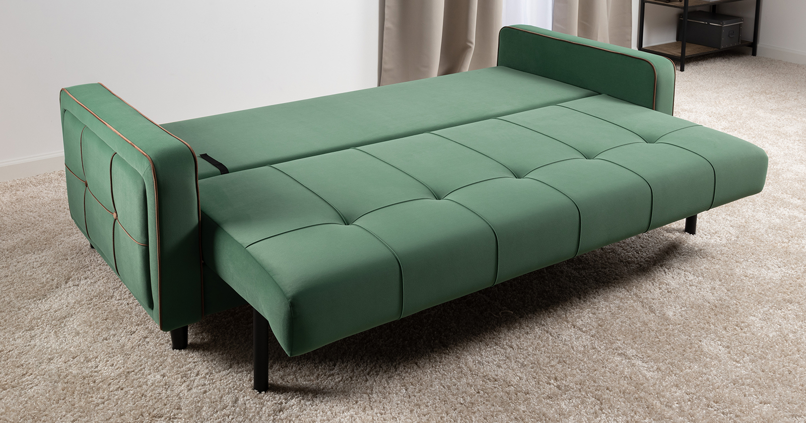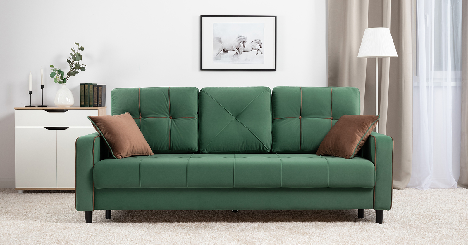 Диван-кровать прямой Черри ТД 288 велюр Irida 09 зеленый, Эвита шоколад бежево-коричневый