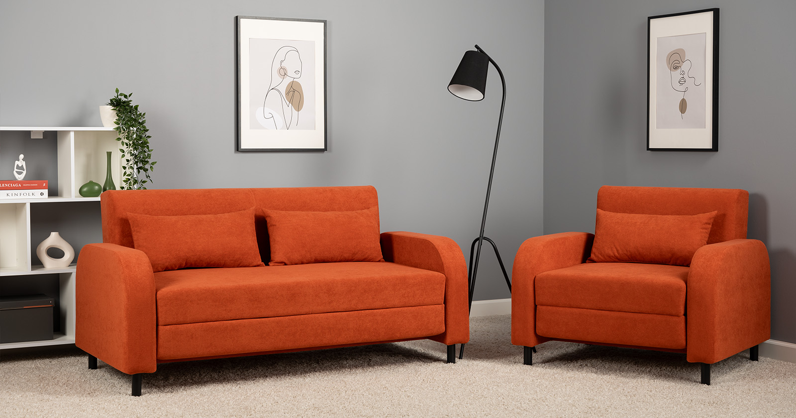 Диван и кресло сочетают в себе лаконичность и функциональность. Минималистичные линии и отсутствие лишних деталей делают коллекцию идеальной для интерьеров в современном стиле.