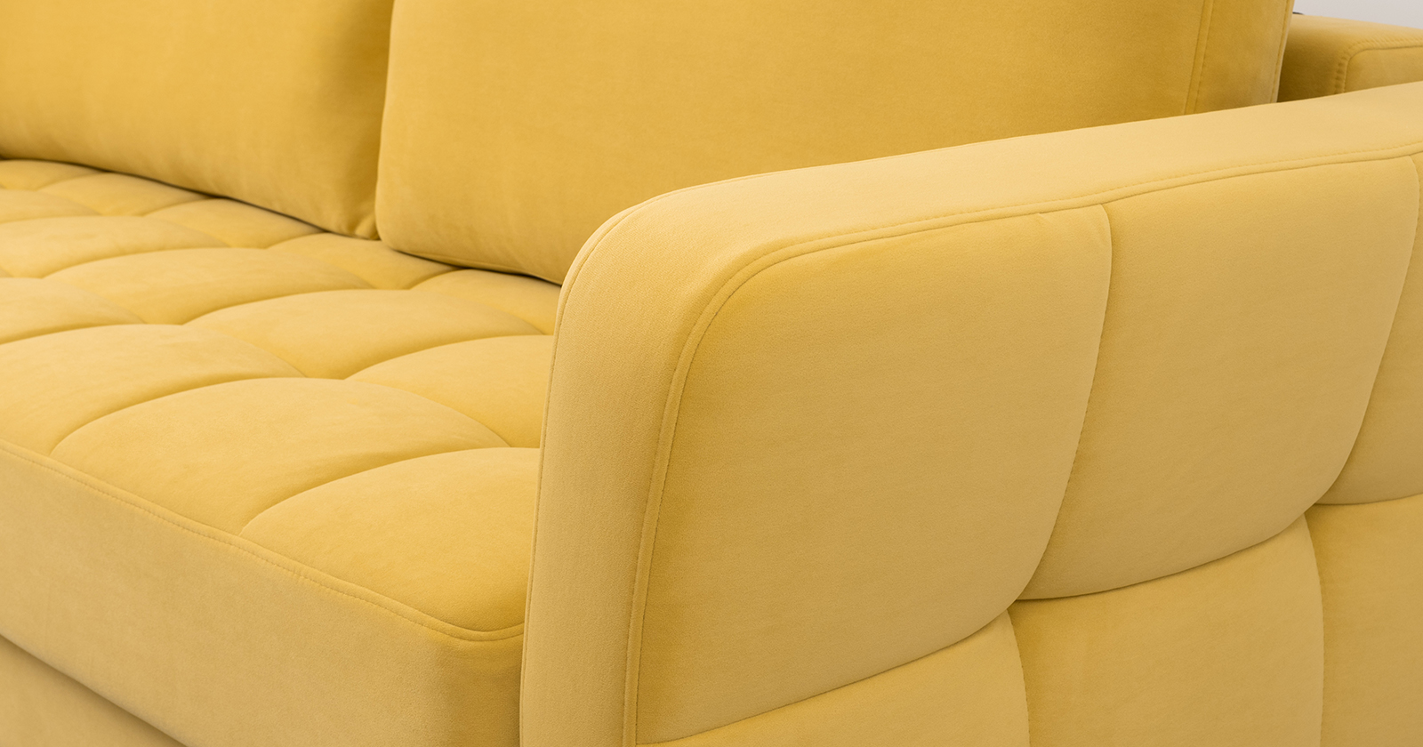Ровная отстрочка по всему периметру сидения и стежка? создающая эффект пышности выделенных форм. Подлокотники прямые с изгибом в наружные стороны, с выраженной стежкой по лицевой стороне. Стежка на посадочной части дивана.