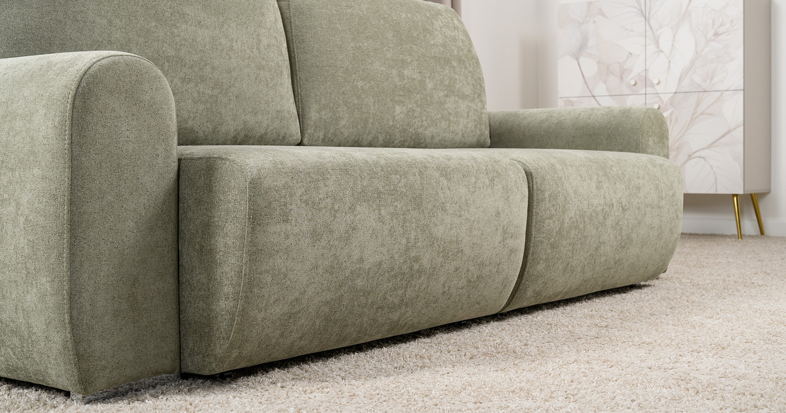 Диван-кровать прямой Тэдди 1503 композиция 1, букле Pique 007 оливковый, модульная система