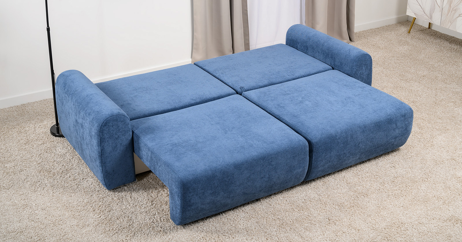 Диван-кровать прямой Тэдди 1504 композиция 1, букле Pique 009 синий, модульная система