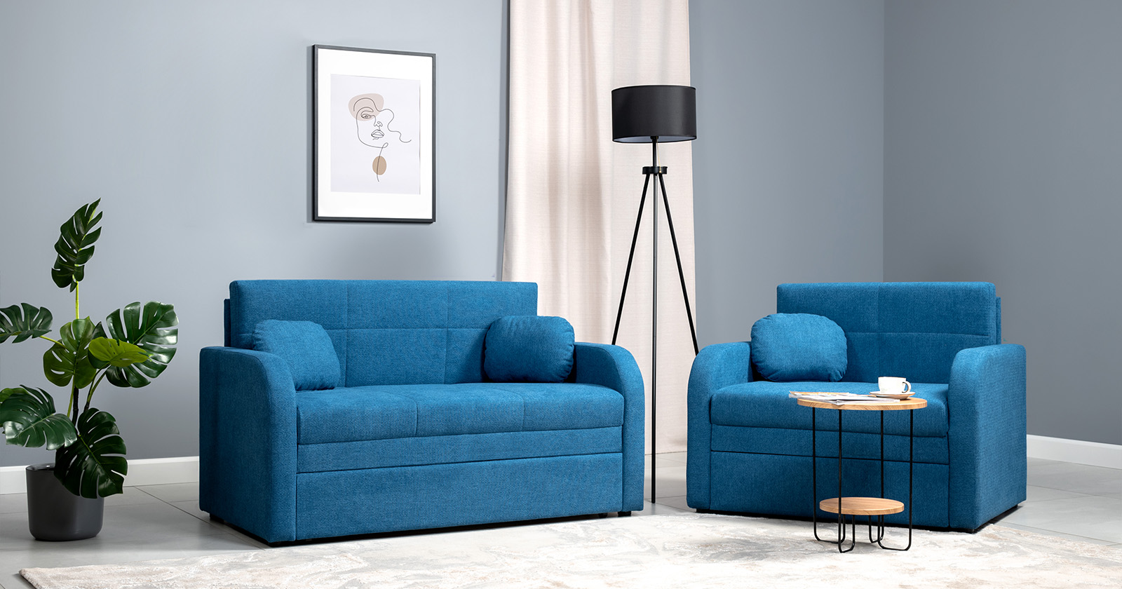 Коллекция выполнена в современном минималистичном стиле с мягкой обивкой из износостойкой ткани и декоративной стежкой, подчеркивающей геометрию форм. Механизм трансформации обеспечивает дополнительное спальное место, делая мебель не только эстетичной, но и максимально функциональной для небольших пространств.