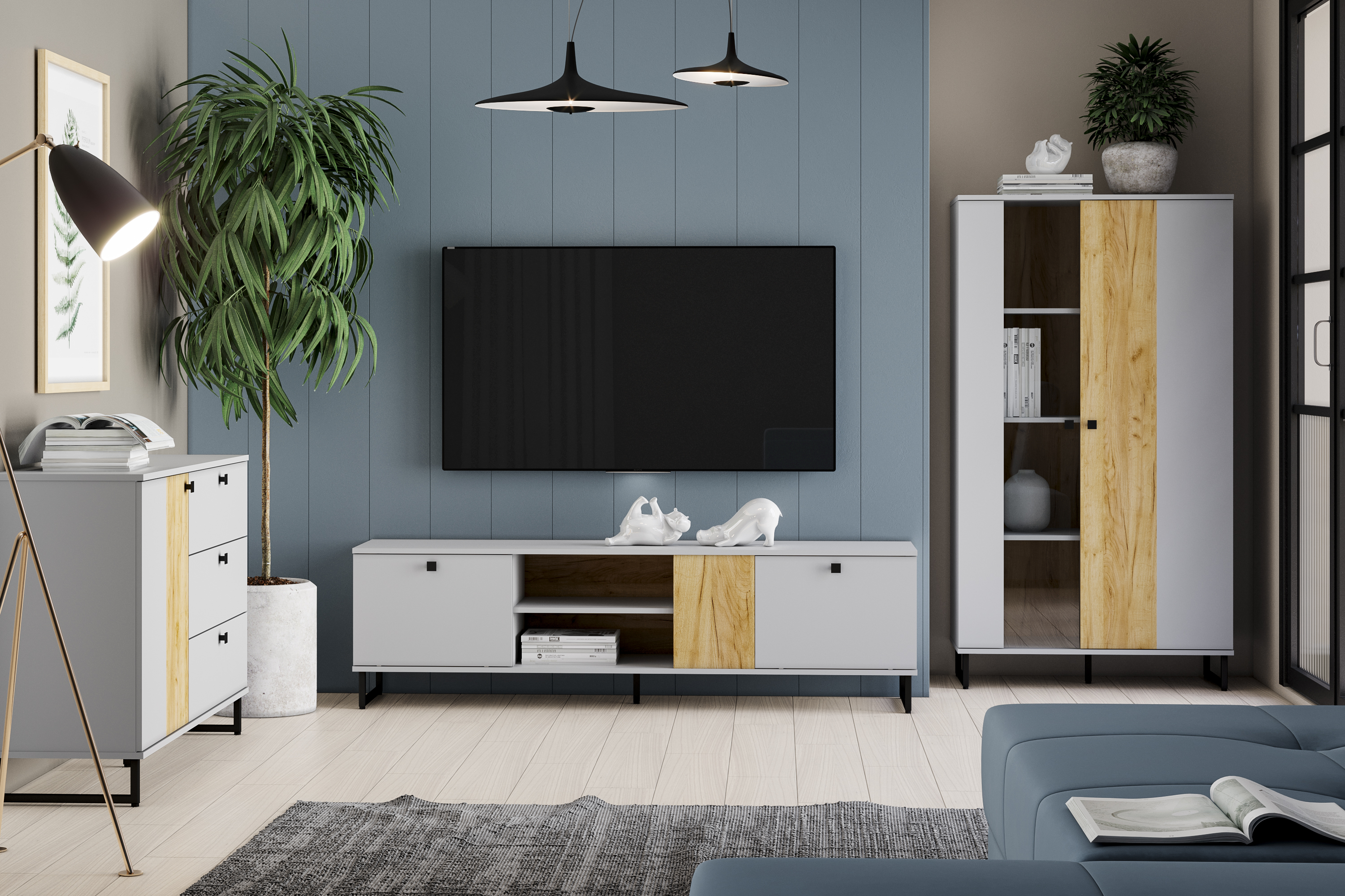 Гостиная Бруно композиция 2 серый камень, дуб крафт золотой