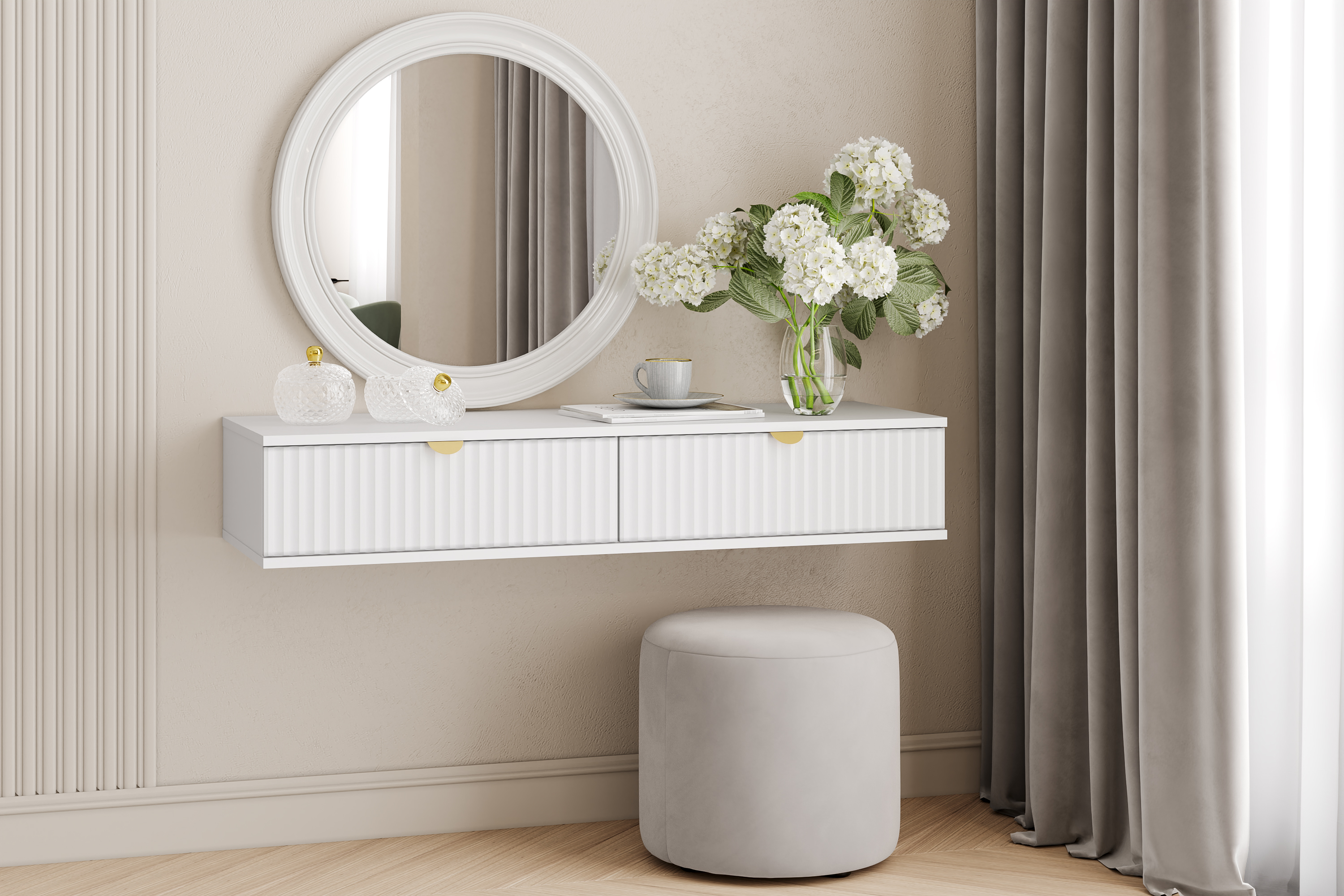 Представляет собой каркас из панелей ЛДСП со стяжной вертикальной панелью и двумя выдвижными ящиками.