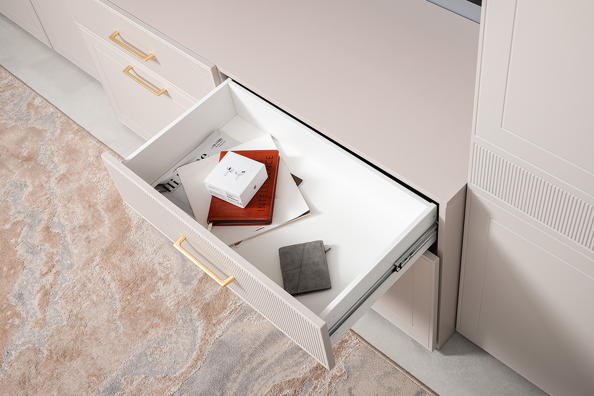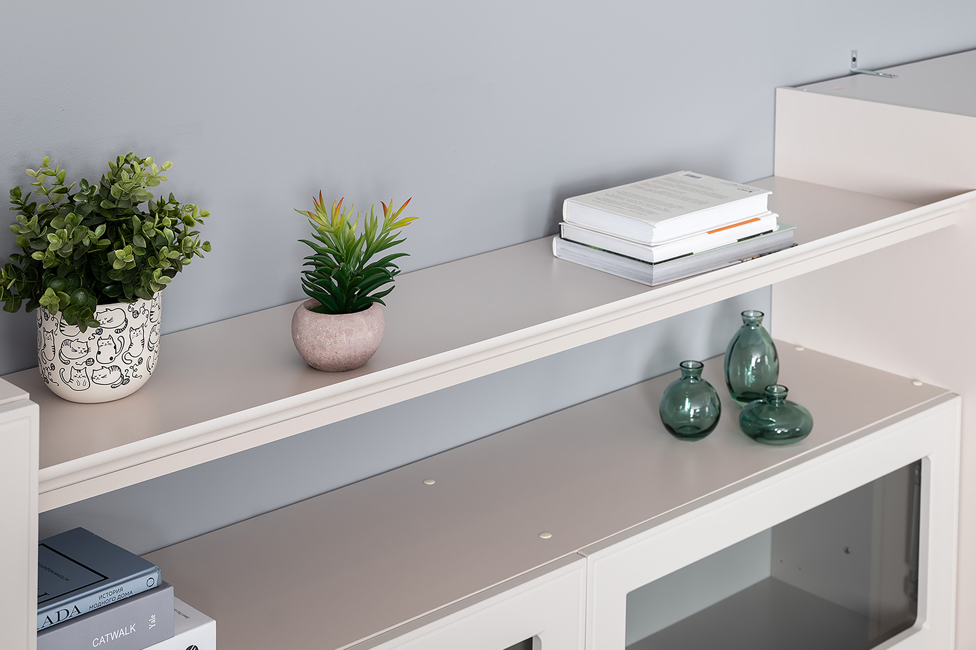Тумба под ТВ Ричфорд 16.61 кашемир 5981 BS, моно керамика D166-2 ПВХ, белый PE шагрень