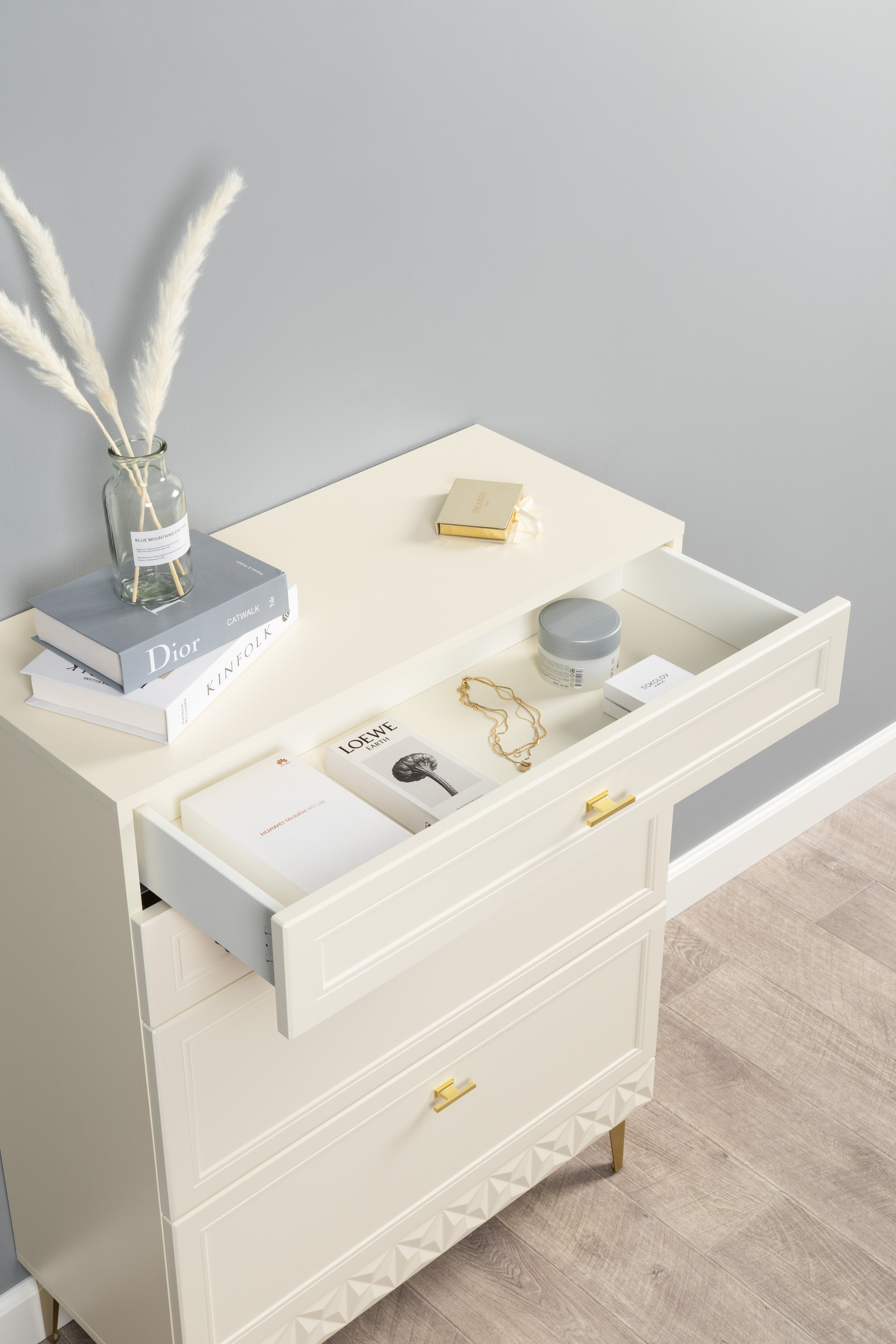 Комод Марион 16.249 слоновая кость С341 PE, слоновая кость 6898 ПВХ, белый PE шагрень