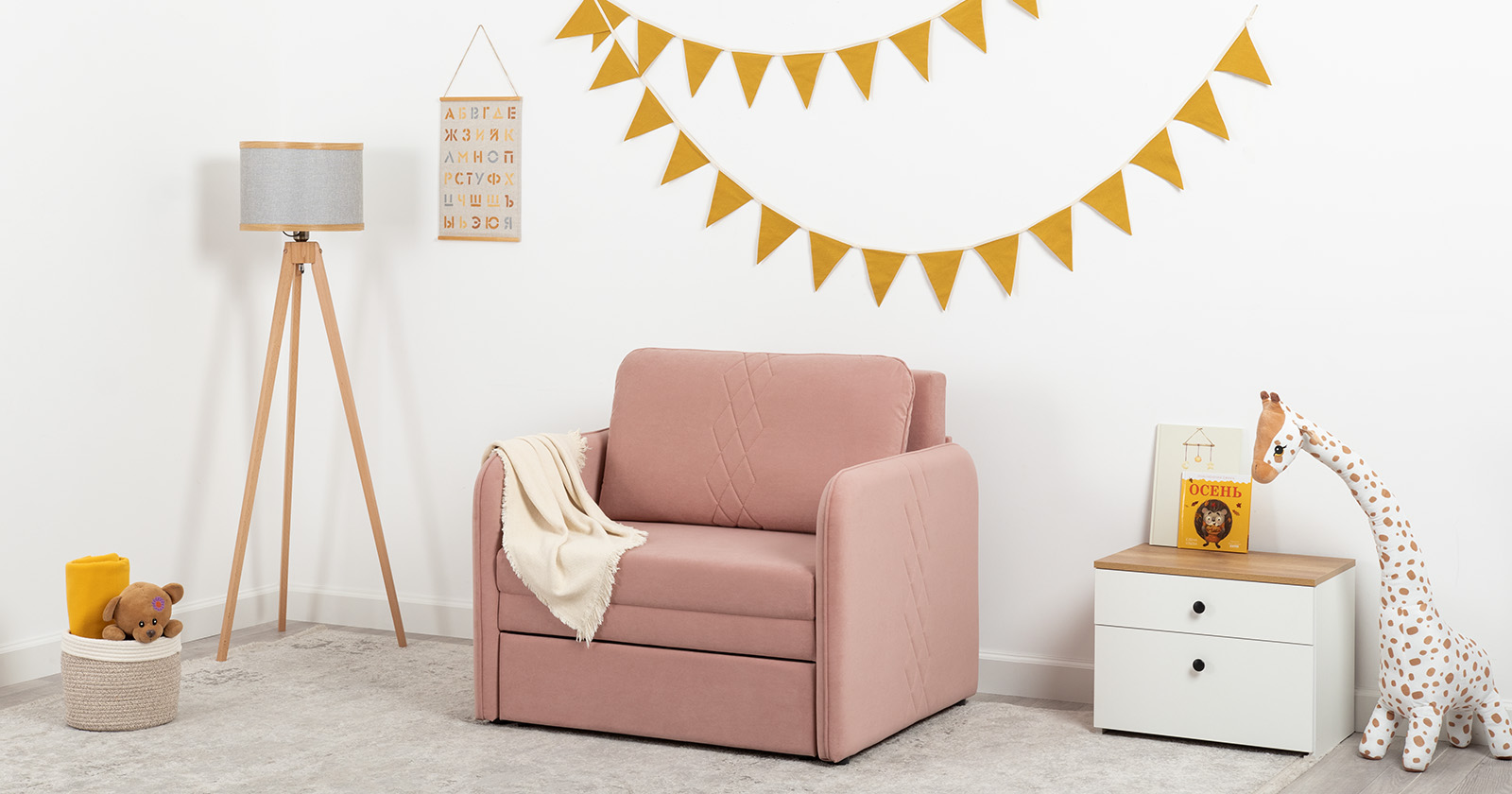 Стильный компактный диван для детской и гостиной. При своих скромных размерах он трансформируется в полноценное спальное место для детей и подростков. Лаконичный дизайн в виде декоративной стежки подчеркивает фактуру велюра, а небольшие размеры позволят разместить его в любом пространстве.