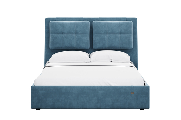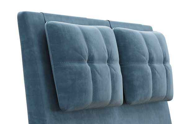 Кровати выполнены в нейтральных и в ярких тканях велюр, что позволяет подобрать подходящий вариант почти под любой интерьер. В качестве декора применяются декоративные подушки на изголовье.