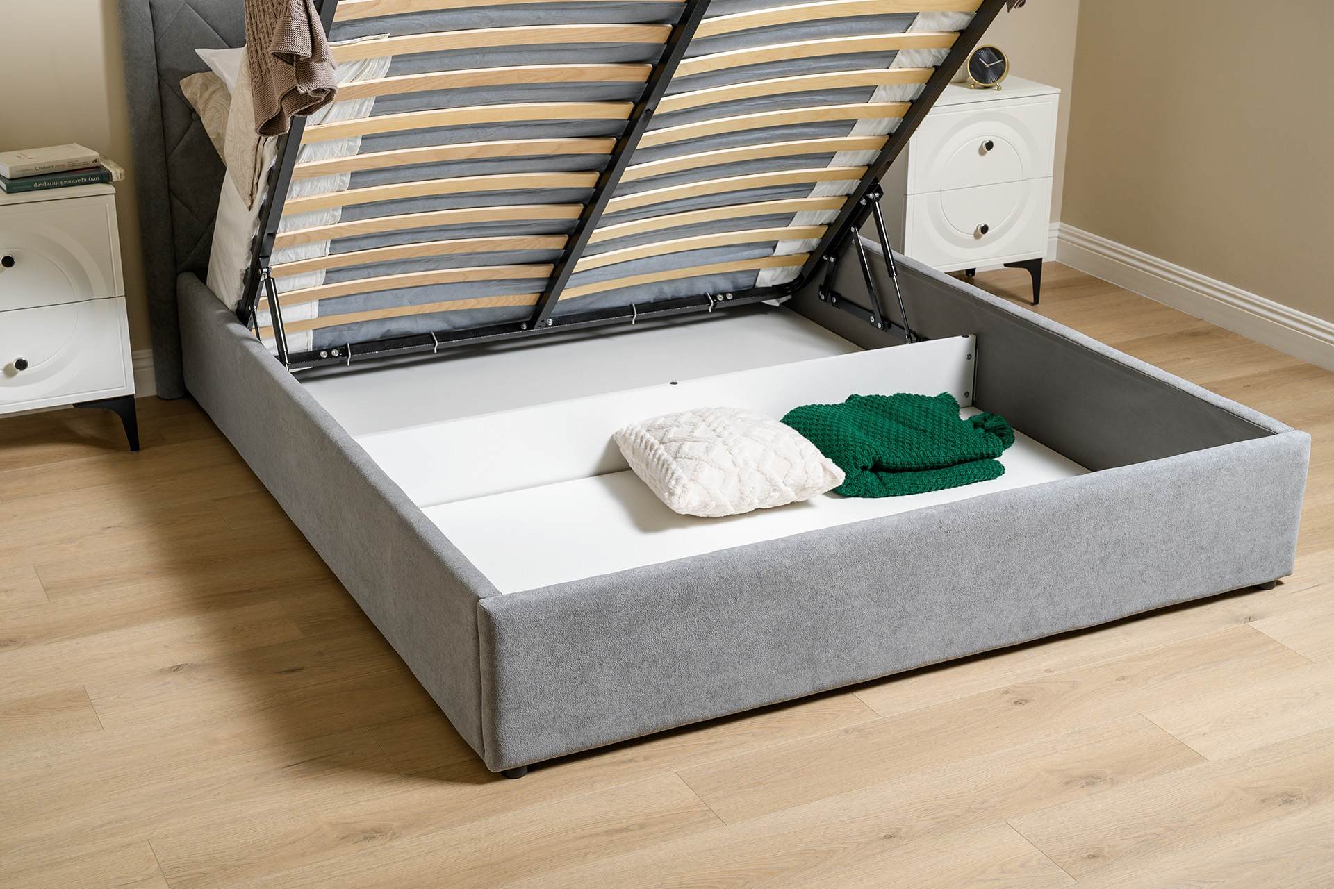 Кровать Марион 160 велюр OCEAN 023 серый с ортопедическим основанием и подъемным механизмом (спальное место 160 х 200)