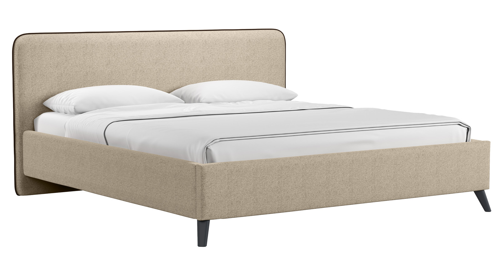 Cкругленный торец изголовья оформлен контрастным кантом.