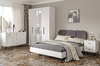 Кровать установлена на высокие ножки, что делает конструкцию лёгкой и воздушной, изголовье кровати декорировано пышным мягким элементом. Матрас укладывается на ортопедическое основание с гнутоклееными ламелями.