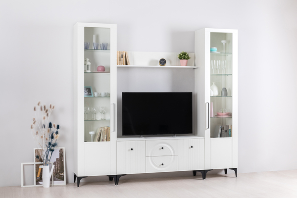 Полка навесная в гостиную Валенсия 16.481 белый PE шагрень, белая шагрень ПВХ