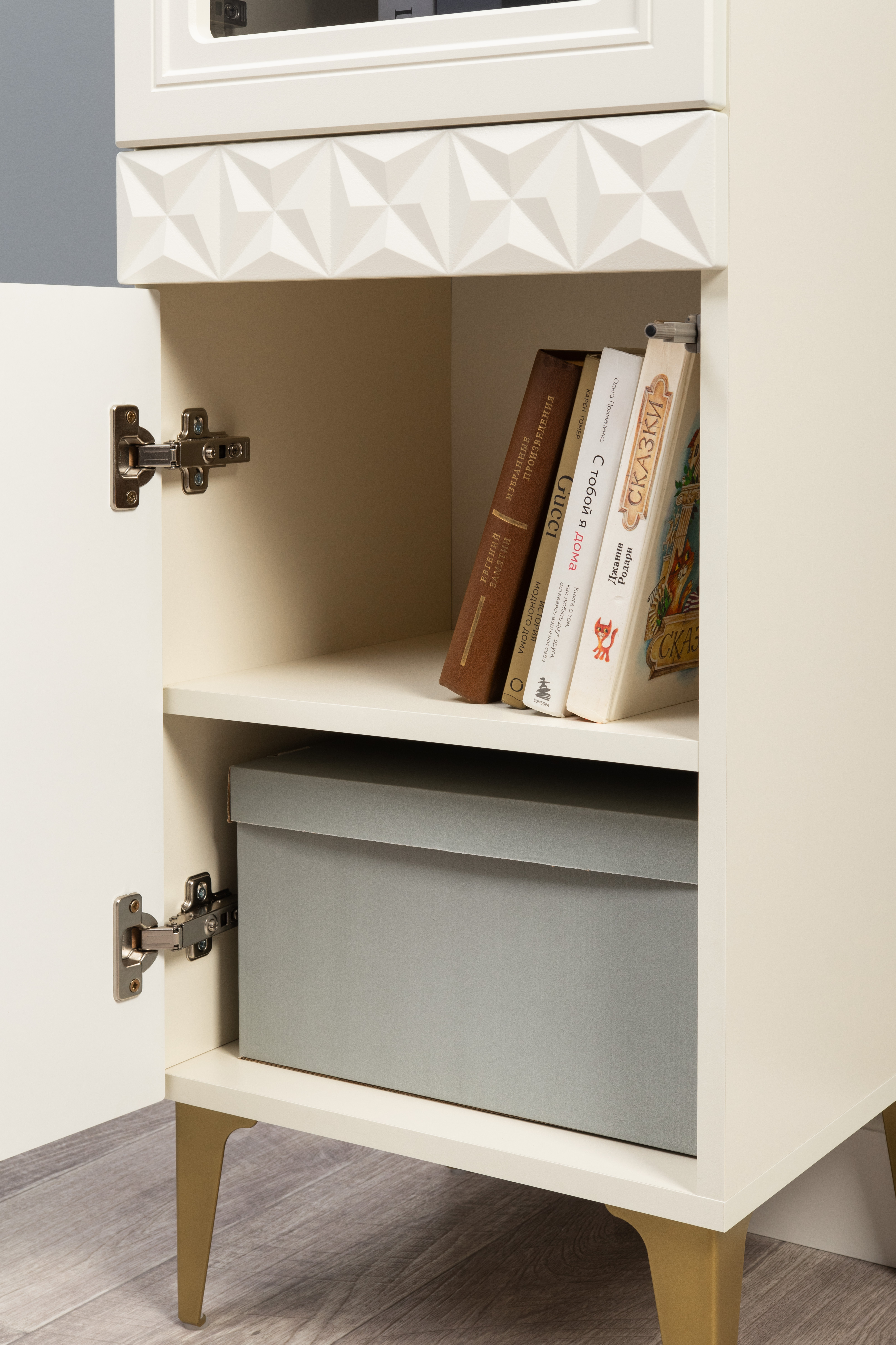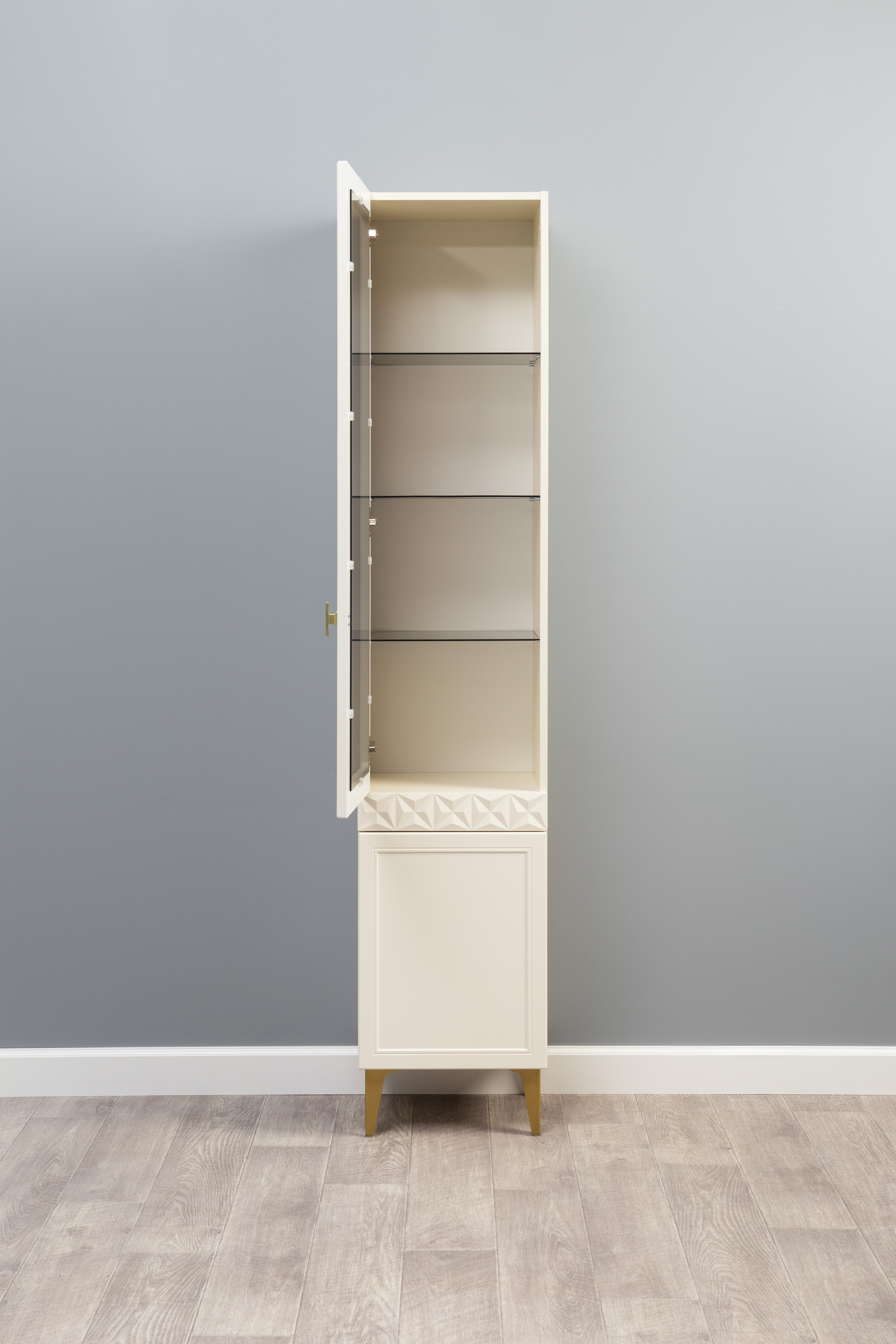 Шкаф-витрина Марион 16.397.01 слоновая кость С341 PE, слоновая кость 6898 ПВХ (собирается на любую сторону)