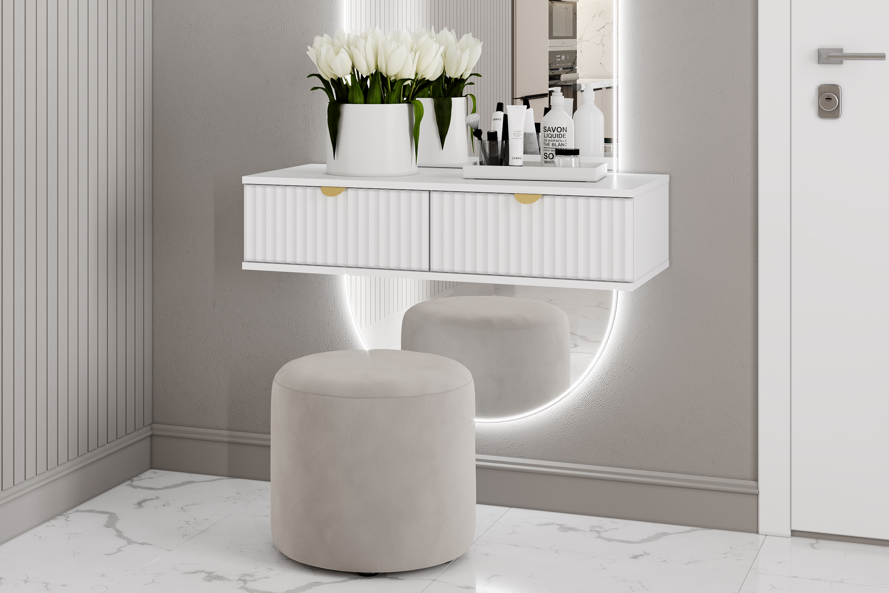 Тумба оснащена двумя выдвижными ящиками, которые открываются плавно и бесшумно благодаря шариковым направляющим.