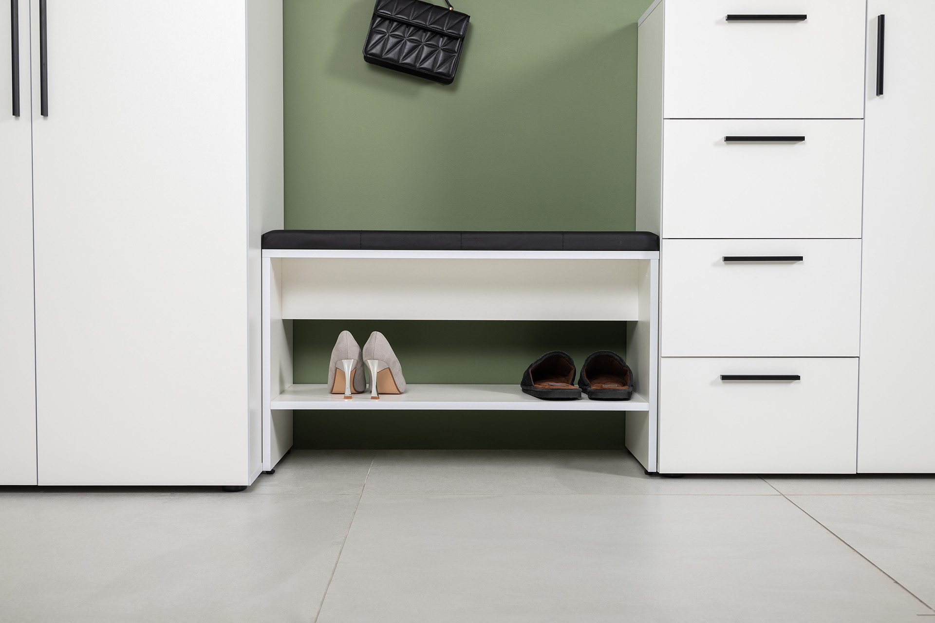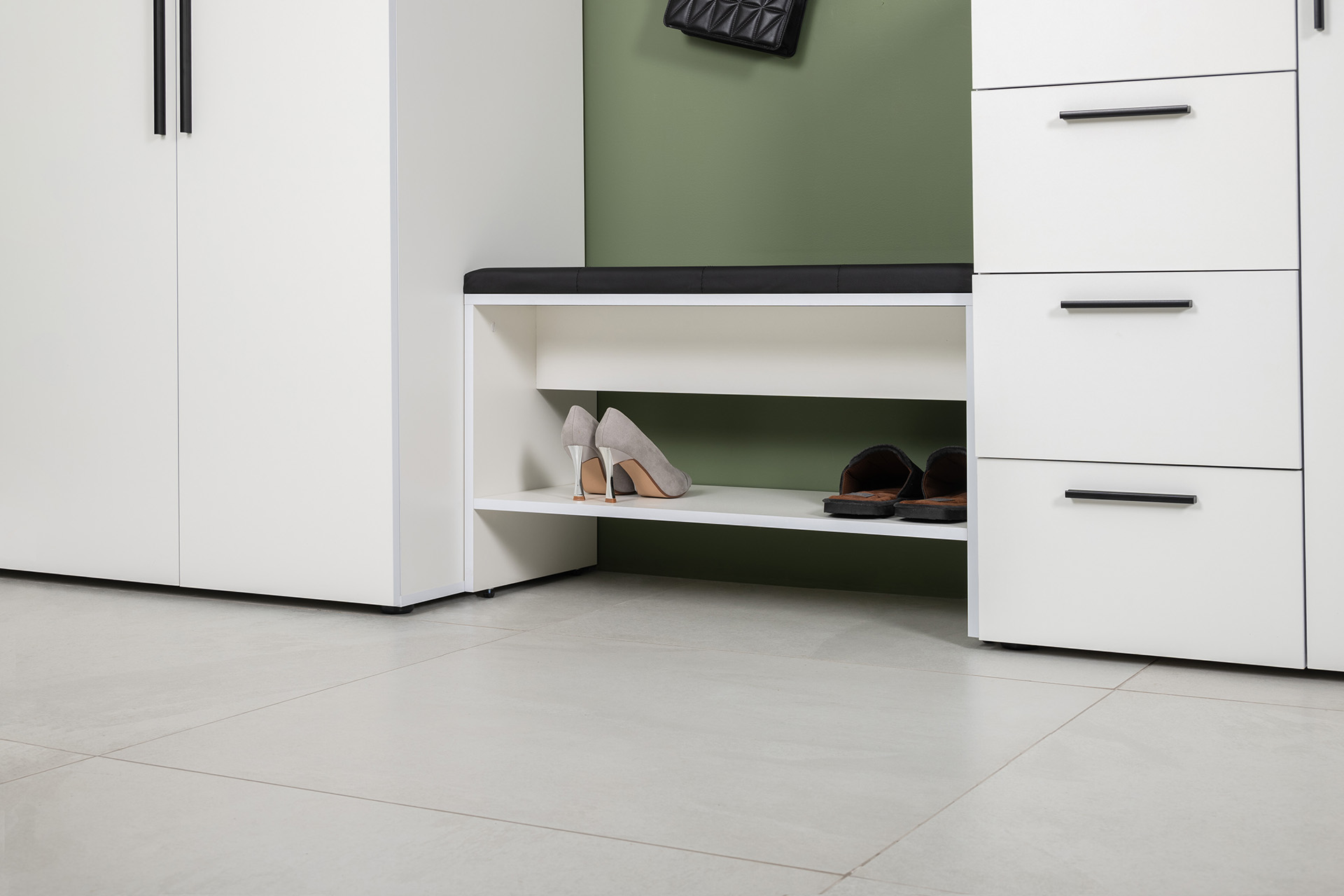 Тумба для обуви Эйр 16.130 белый PE шагрень, кожзам HOLST black