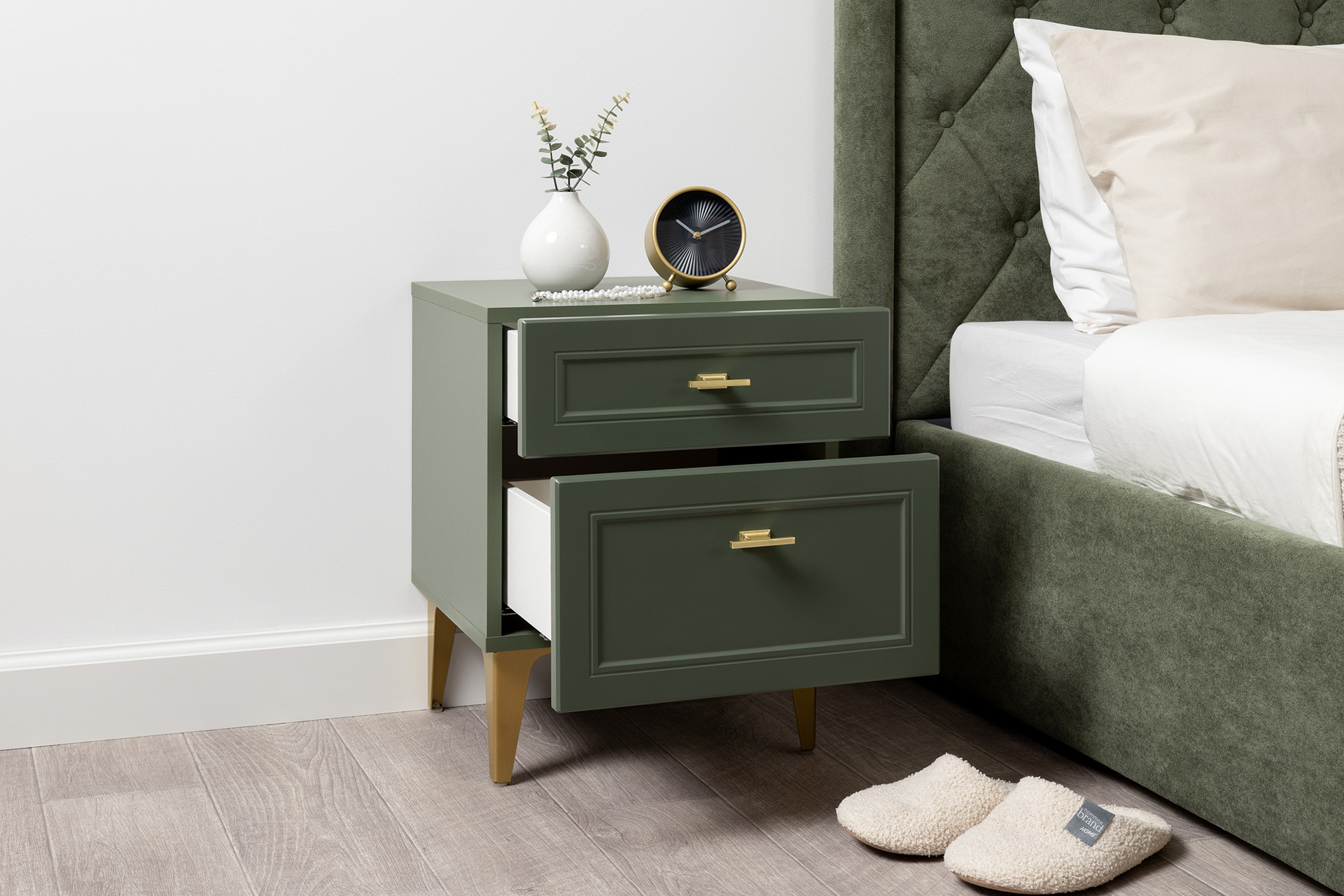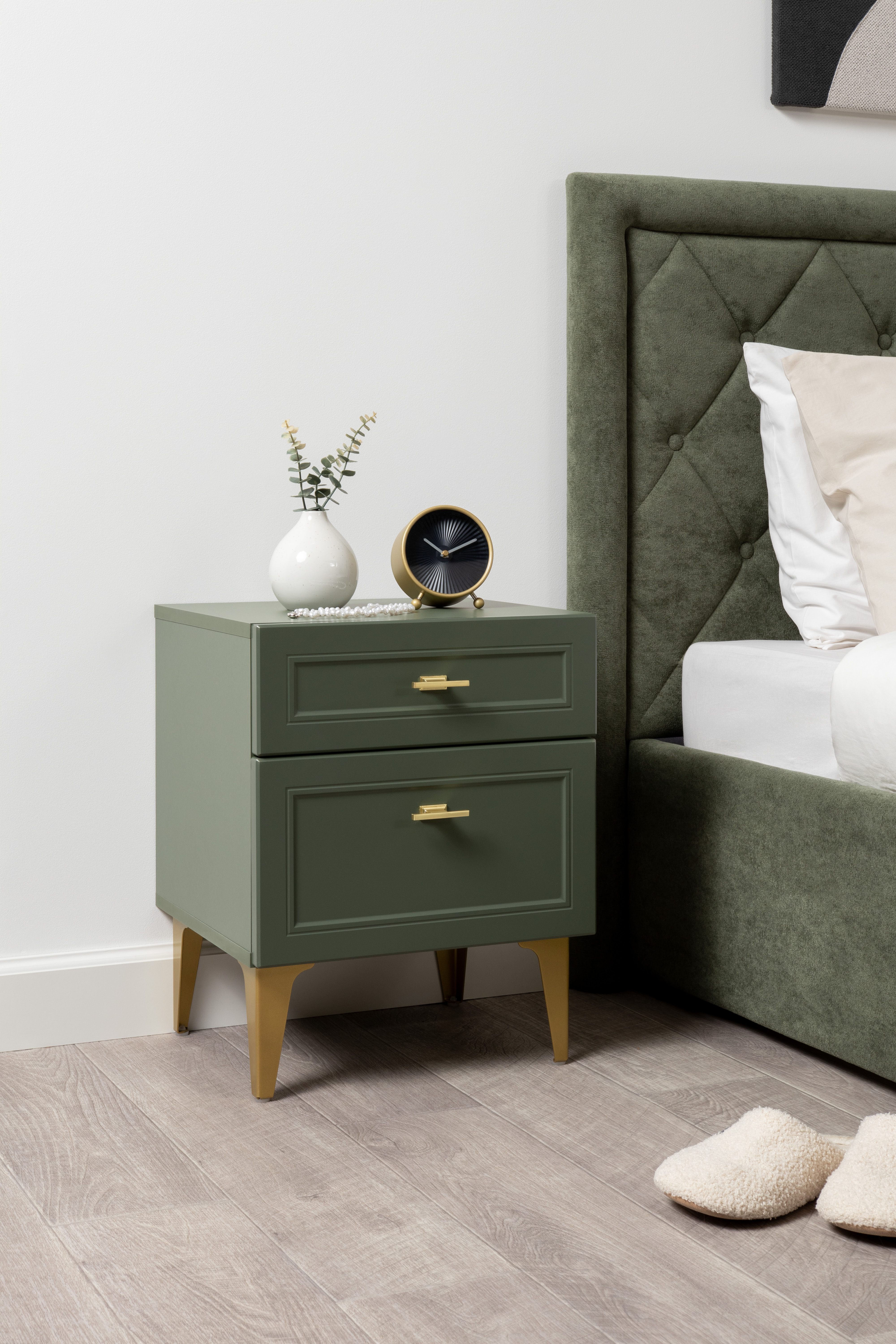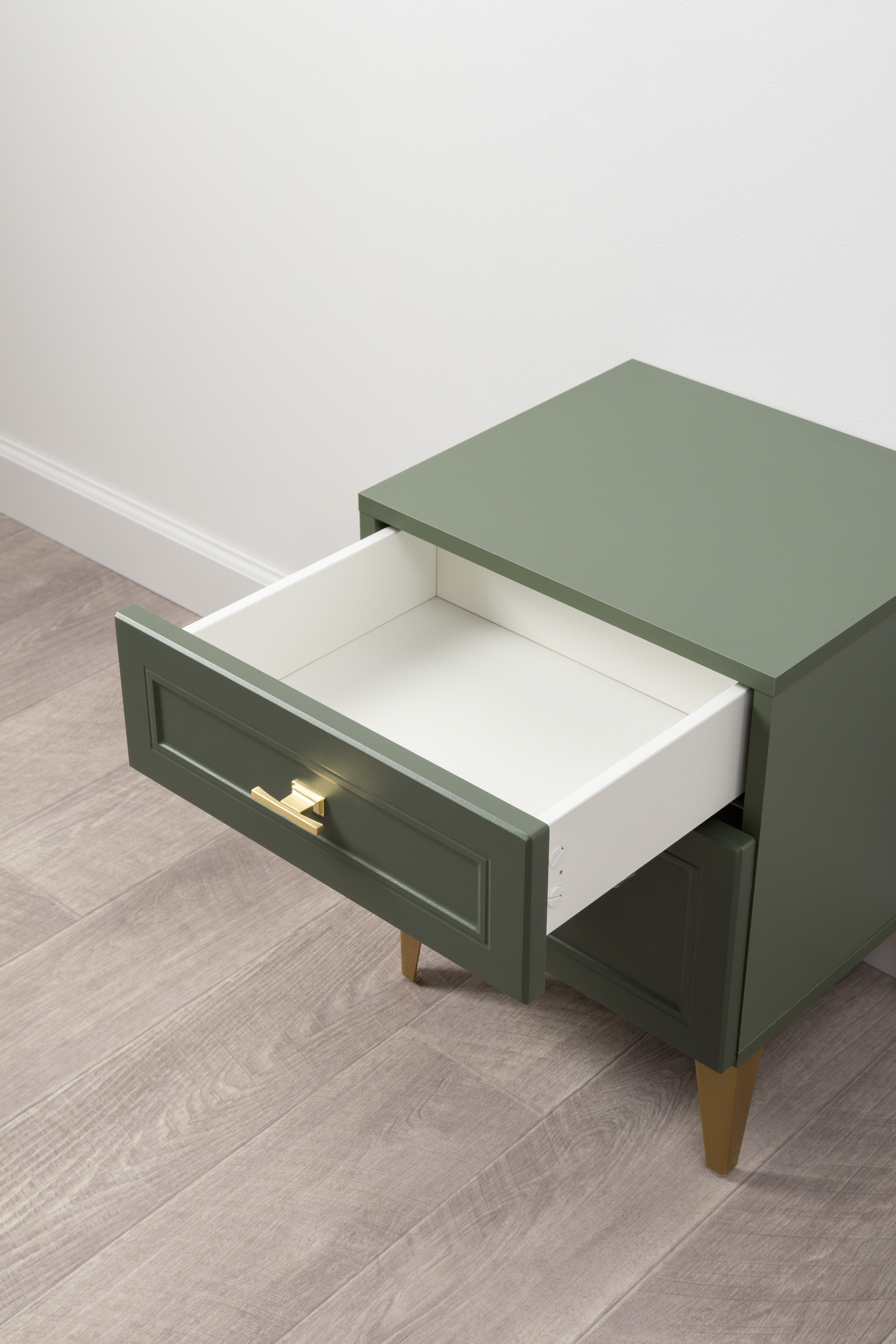 Тумба прикроватная Марион 16.14 дымчатый зеленый K521, олива шагрень AG 1050 ПВХ, белый PE шагрень